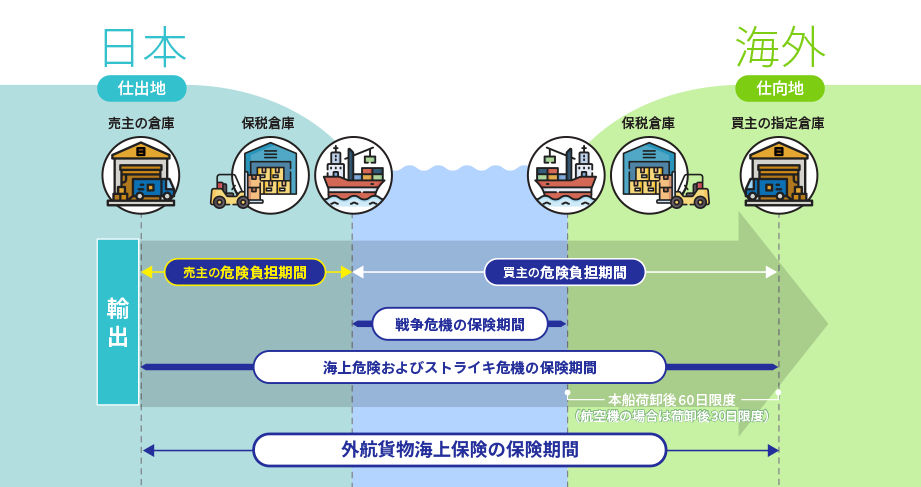このうち戦争危険だけは保険期間が異なりますのでご注意ください。